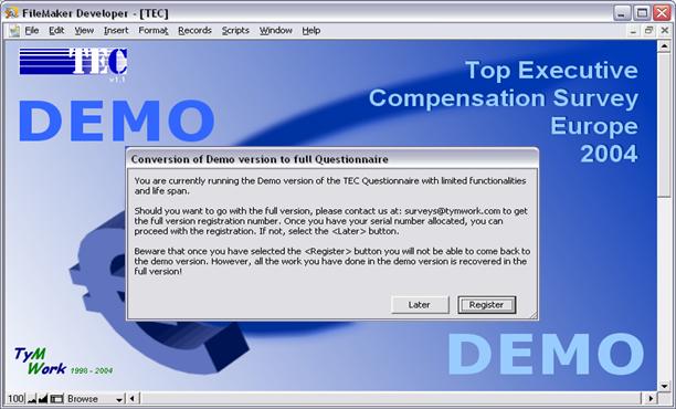 DEMO VERSION Click on the <Later> button to continue with the demo version.