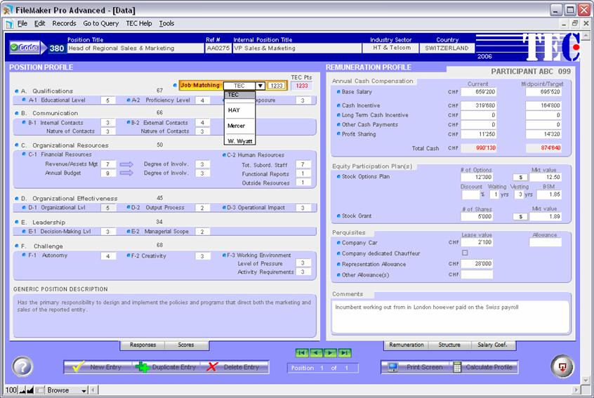 Text Box: Once you have clicked on the "START" command, the below screen will appear. This is the main screen of the survey to be completed for each positions you are covering in the survey. So it is important that all fields be properly completed.