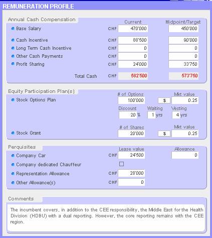 The position remuneration profile where all cash, non-cash or deferred cash elements have to be completed for each reported individual.